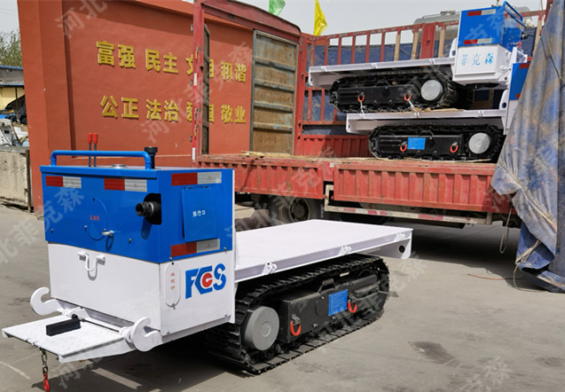 菲克森設(shè)計的礦用履帶式平板運(yùn)輸車,結(jié)合井下運(yùn)輸?shù)膶嶋H工況,在結(jié)構(gòu)上進(jìn)行了改進(jìn)設(shè)計。在提高工作效率的同時,革命性的解決了井下常規(guī)運(yùn)輸中的難題。