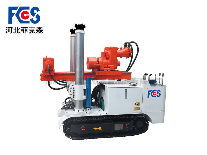 開孔時,先啟動電機(jī),待輸送正常后,再拉動機(jī)械手推拉手柄。使其獲得適當(dāng)?shù)耐七M(jìn)力,然后將控制沖擊器的手柄拉到工作位置。鉆孔后,可打開水閥,使氣水混合物保持適當(dāng)比例。進(jìn)行正常的巖石鉆探。當(dāng)推動工作使剝離器移動與刀架碰撞時,鉆一根鉆桿。為使電機(jī)停止運(yùn)行,停止沖擊器的供氣和供水,將叉子插入刀架的鉆桿槽中,使電機(jī)反轉(zhuǎn),向后滑動,并將接頭與鉆桿斷開,然后連接第二根鉆桿。根據(jù)這一點,你可以循環(huán)和連續(xù)工作。